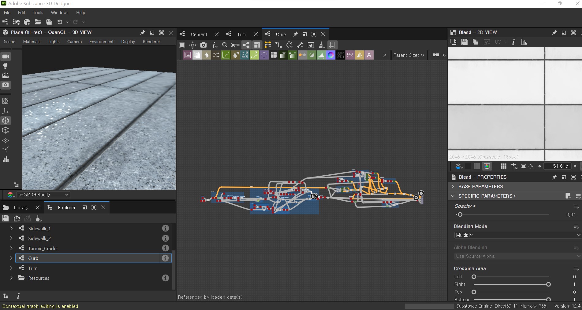 이제 섭디가 된다. 어떻게 하는지 감도 안 잡혔었는데 아스팔트 튜토리얼 하나 따라하고 깨달았다. 생각보다 어려운 튜토리얼을 고른게 도움이 된 것 같다. 처음엔 굳이 싶을 정도로 블랜드를 많이 하길래 미친 사람인가 싶었고 따라 하다가 정신 나갈 뻔했지만 덕분에 섭디 사용에 대해서 깨달았다. 이런식으로 무작정 어려운 튜토리얼을 따라하는 것도 도움이 꽤나 많이 되는 것 같다. 튜토리얼에 앞선 큰 매테리얼 워크플로우 이해도 큰 역할을 했다. 게다가 Dirt를 만들어보기도 했고 아무튼 노드가 더럽게 많아보이지만 헤이트 워크플로우와 컬러라이즈 단계가 있고 그 안에서도 큰 쉐잎에서 작은 쉐잎으로 나가야 된다는 걸 알고 작업하니 전혀 복잡하지 않다. (특히 대중소 원칙을 나름대로 지켜가면 디테일을 지키기 쉽다.) 게다..